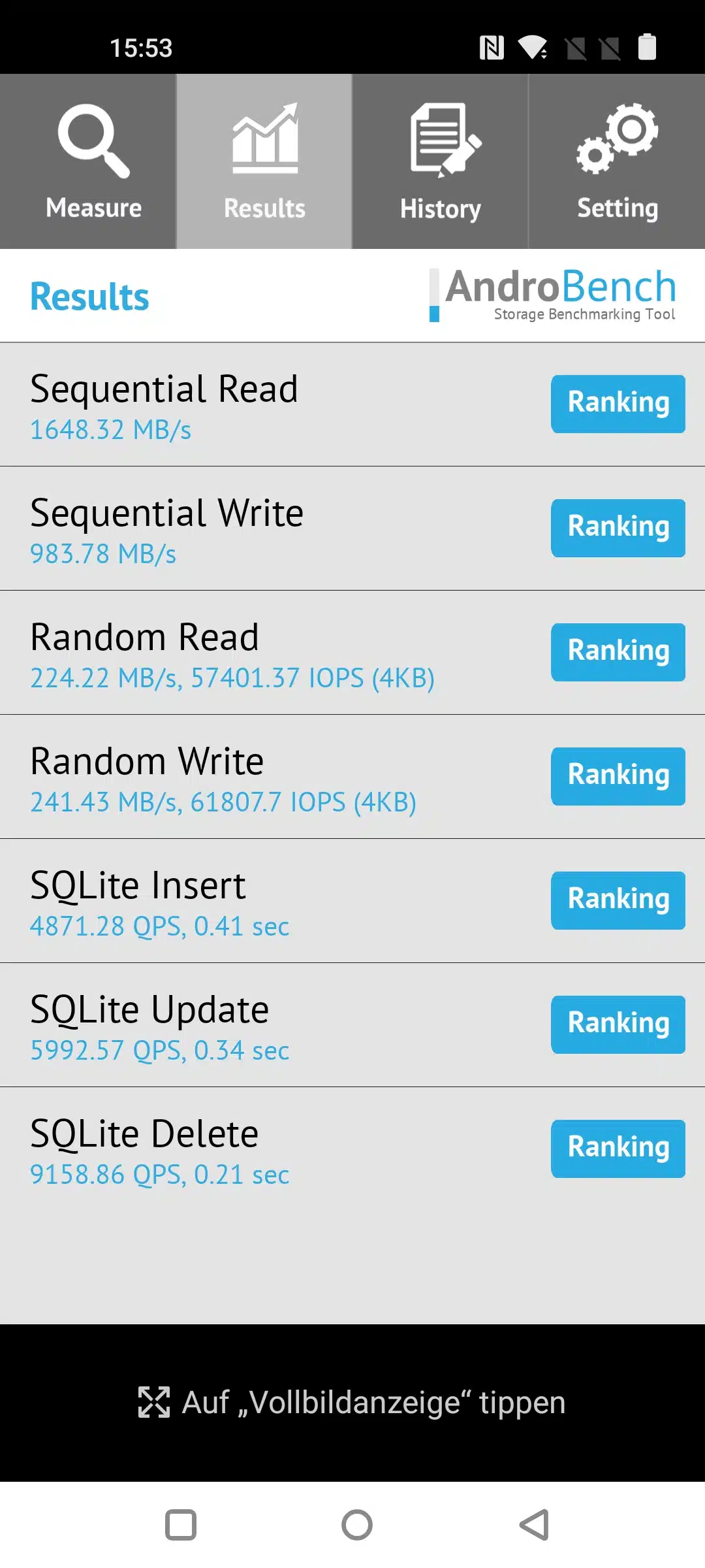 Die Lese- und Schreibraten fallen wieder gut aus, aber auch hier, je nach Benchmark und Programm fallen sie aber etwas ab. So hatte das OnePlus Nord 2 etwa ~1200MB/s Lesen zu ~500MB/s Schreiben.