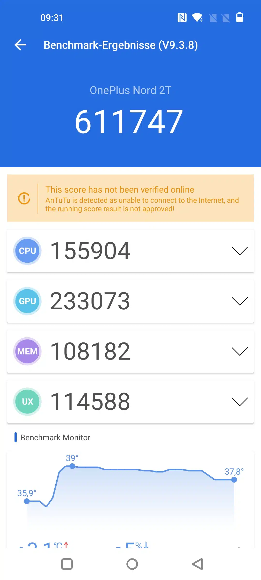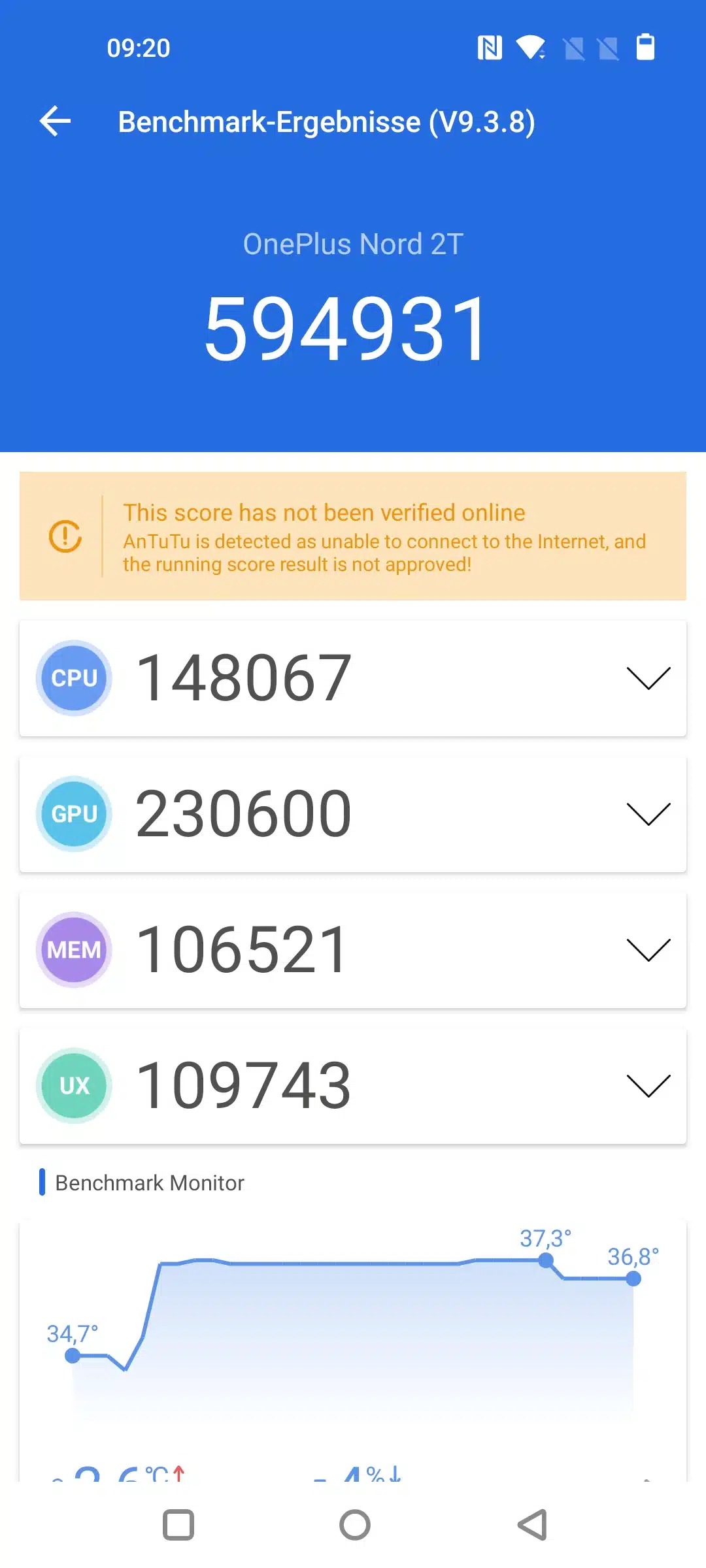 Bei den allgemein Benchmarks fallen die Werte recht ähnlich aus, hier und da schwanken CPU und GPU Punkte aber etwas. Leistungstechnisch erreichen wir im normalen Betrieb aber um die ~600.000 Antutu Punkte (beim zweiten Durchlauf tatsächlich sogar leicht mehr). Also in dem Segment, wo das Nord 2 auch liegt.