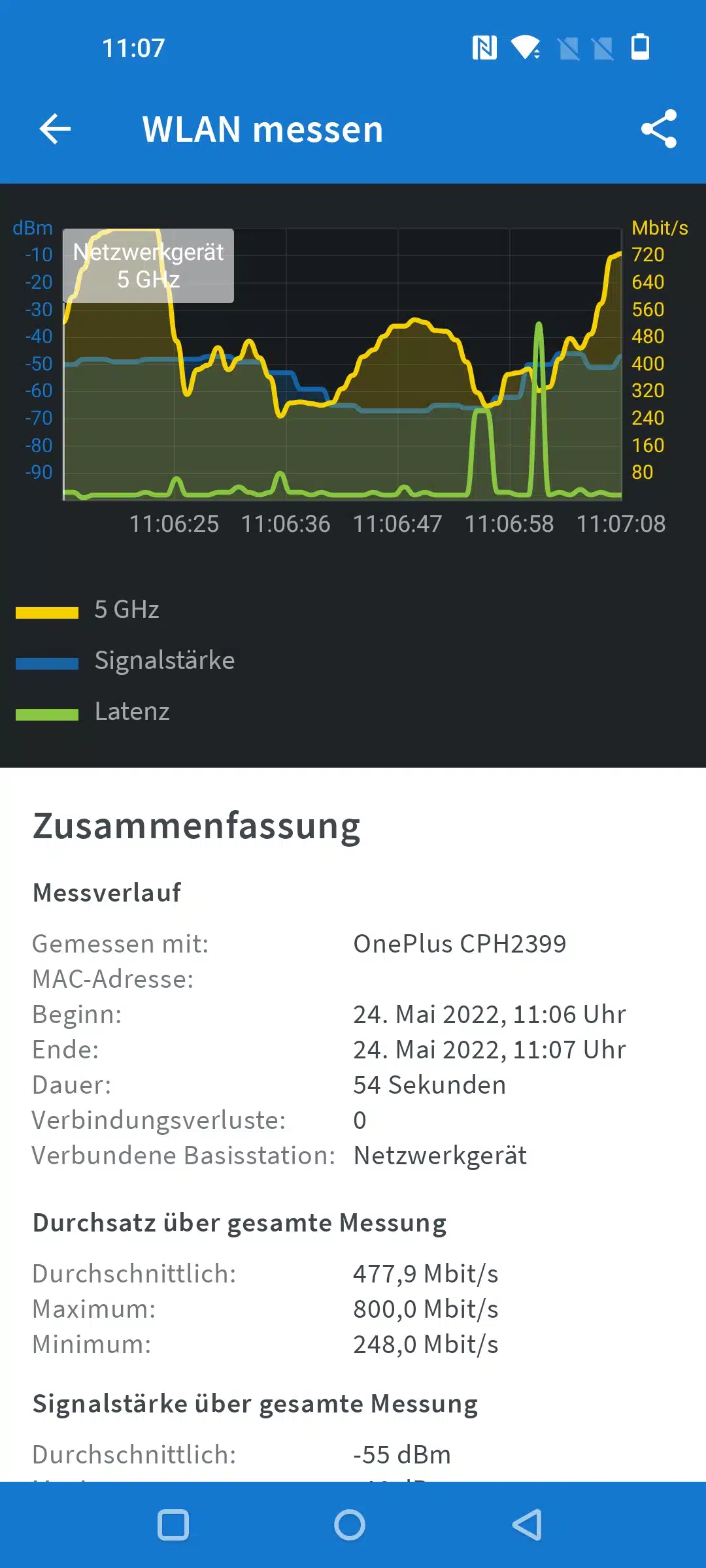 Das Dual-Band WLAN ist stabil und wechselt auch zuverlässig automatisch von Mobil auf WLAN, oder andersherum, um. Bei der Verwendung von Bluetooth ist uns im Test nichts negatives aufgefallen.