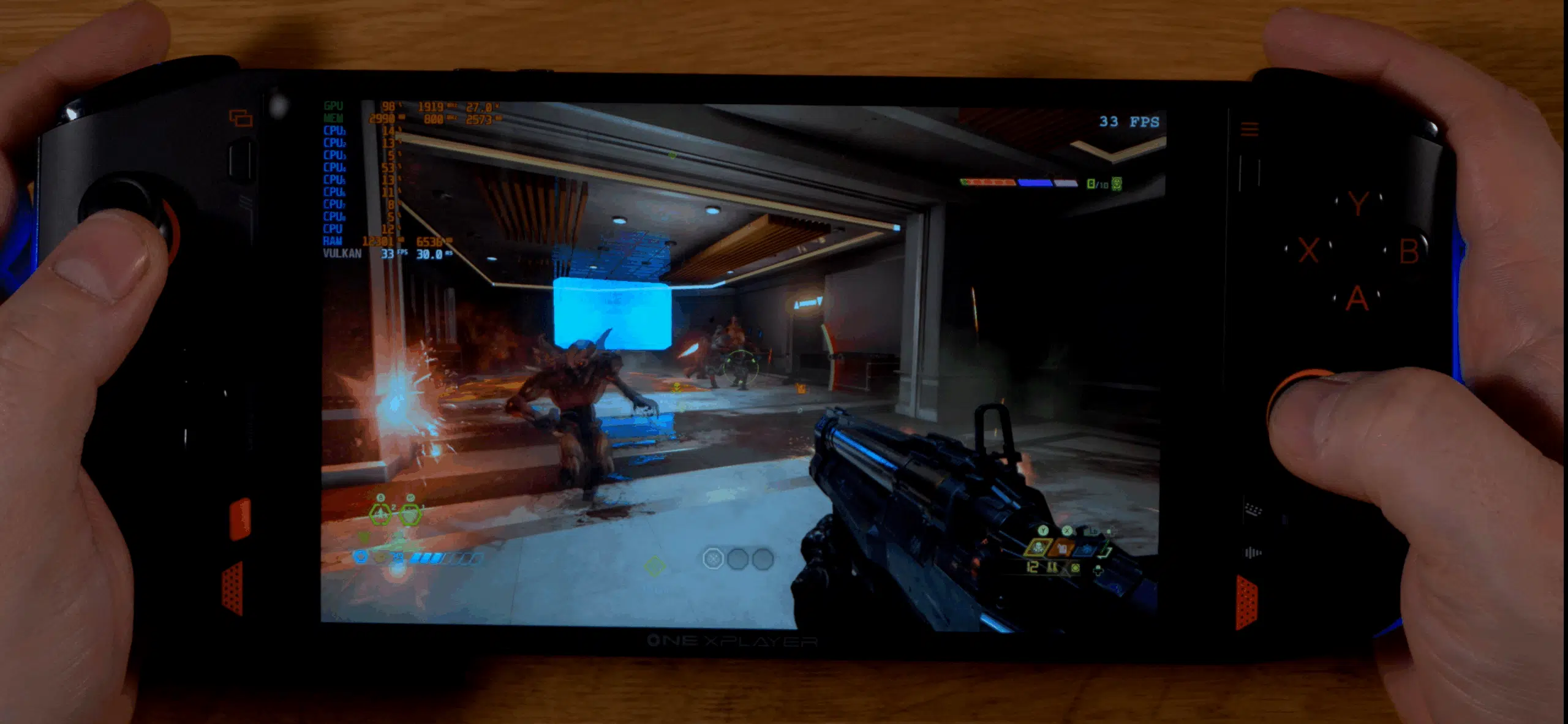 Die verwendete iGPU basiert ebenso wie das Steam Deck auf RDNa2 Technik, konkret handelt es sich um die Radeon 680M RDNa2 iGPU. Anders als im Steam Deck wird momentan nicht nur (aktuell) ein Spiel mit Raytracing unterstützt, sondern man kann hier selbst die Spiele und Grafikeinstellungen nutzen wie man möchte. So ist Quake 2 RTX in Raytracing spielbar, ebenso wie Doom Eternal mit aktivierten Raytracing, das auf dem Steam Deck auch läuft.