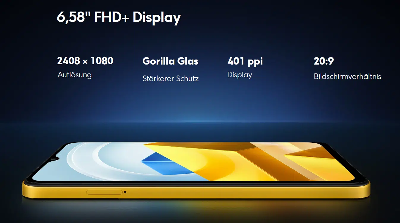 Hier verlässt sich Poco auf die alte Tropfen-Notch, die so fast in jedem günstigen Smartphone verbaut ist. Das IPS Display selbst kann mit bis zu 90 Hz Bildwiederholfrequenz arbeiten und automatisch zwischen 30/60/90Hz dank „DynamicSwitch Display“ wechseln.