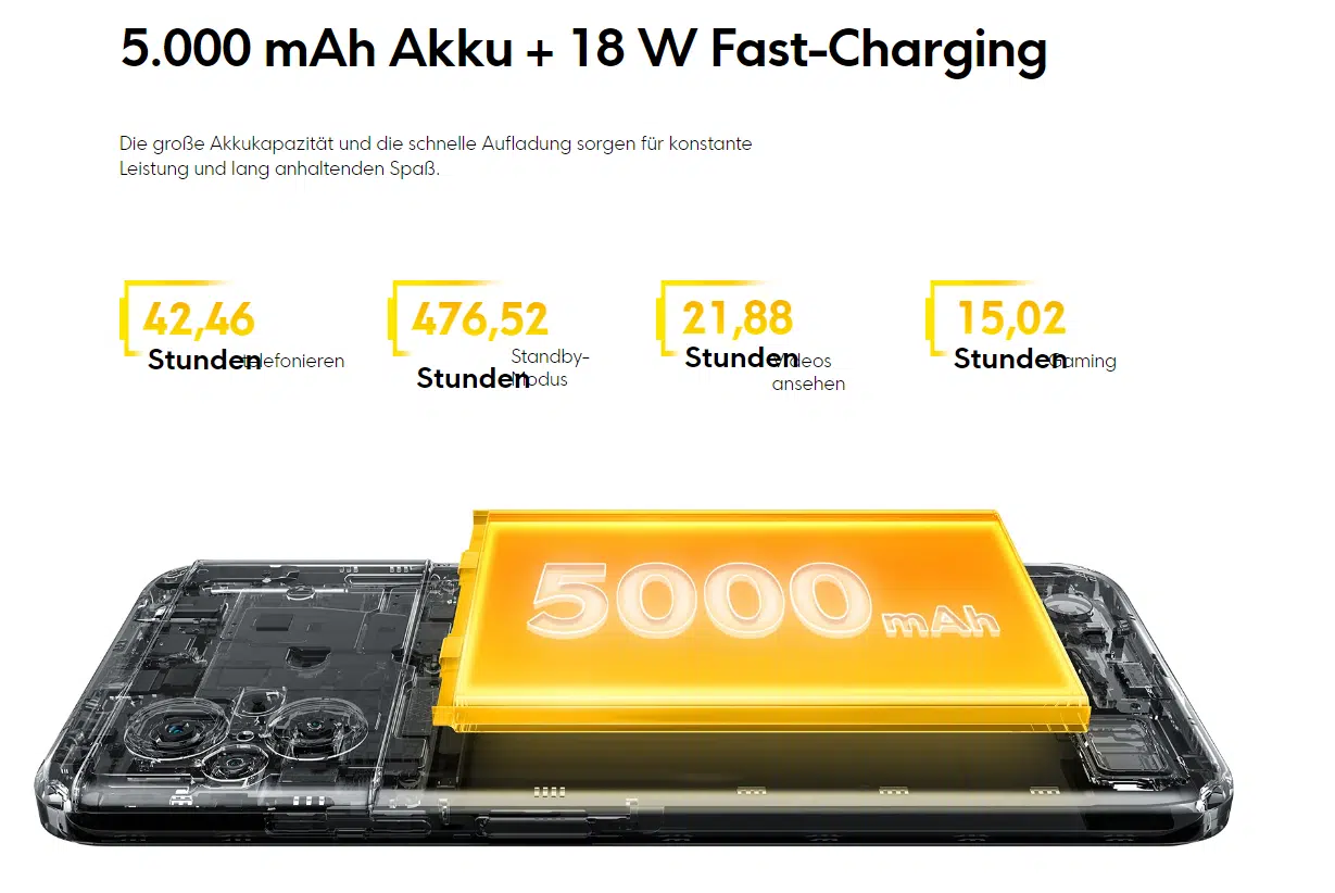 Hier bekleckert sich Poco nicht zwingen mit Ruhm, die 5000mAh Akku Kapazität jedoch geht schon klar, 18 Watt „Schnellladen“ hingegen ist jedoch kein Highlight.