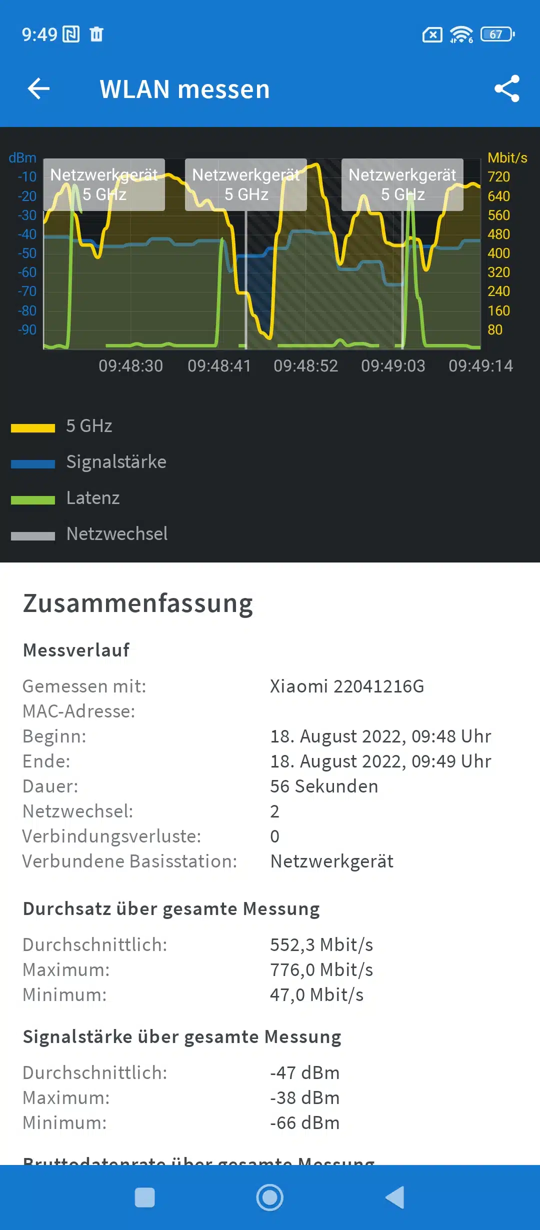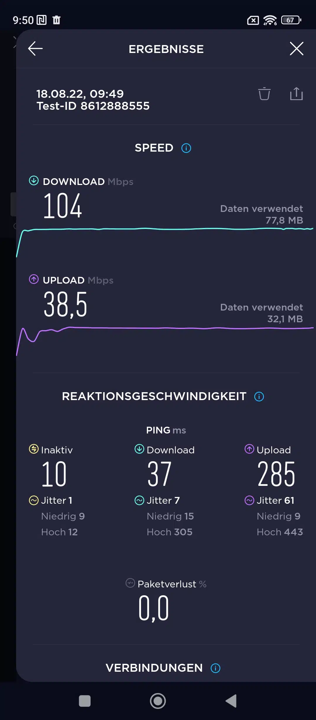 Weder gab es beim Empfang, noch beim telefonieren Probleme. Der Annäherungssensor arbeitete zuverlässig und machte keine Sorgen. Ebenso klappten auch die Wechsel zwischen LTE und WLAN ohne Probleme. Die Werte des WLAN 6 sind im gehobene Bereich, auch das GPS konnte direkt mit einem guten Empfang überzeugen.