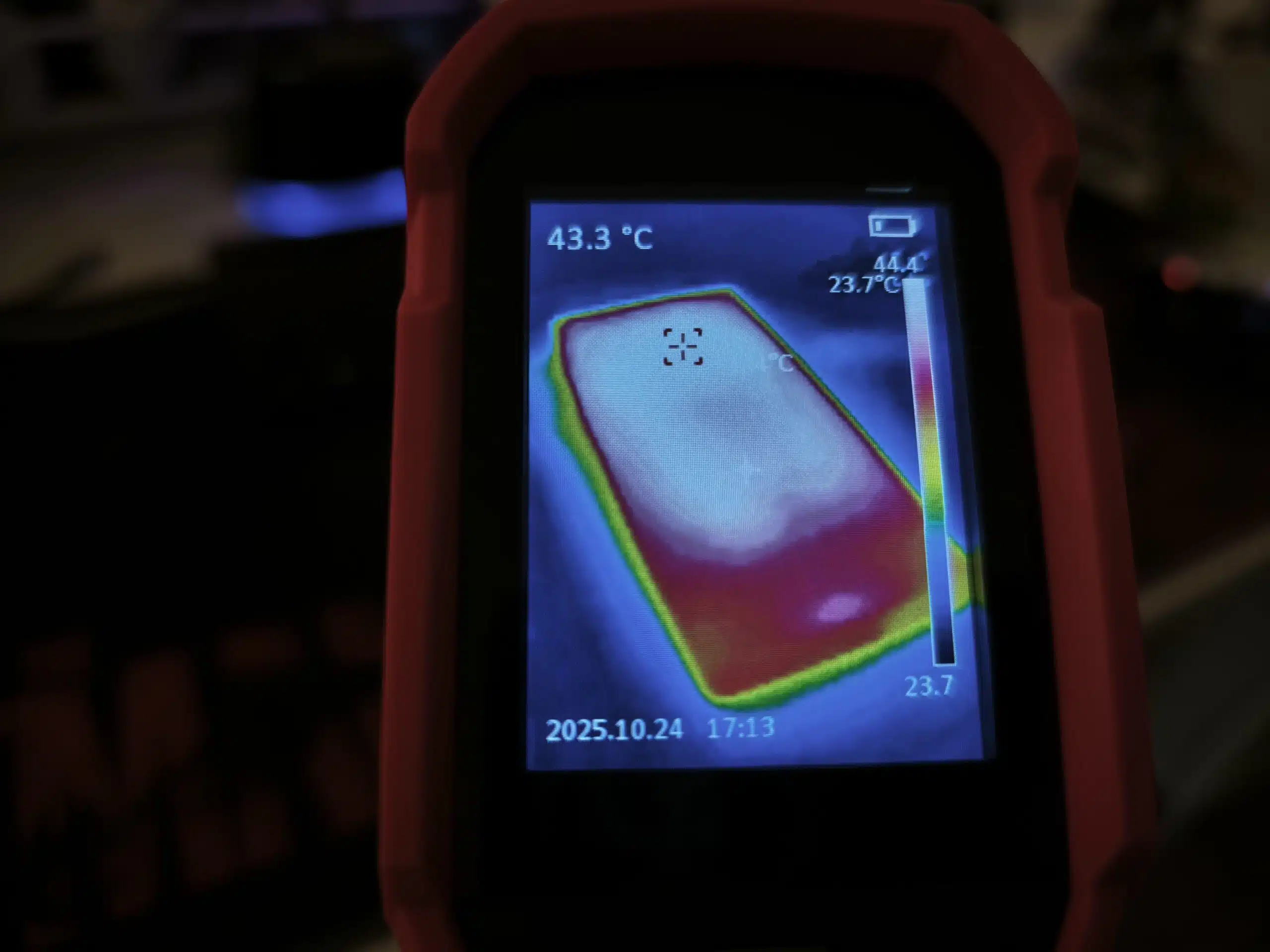 Trotz dieser beeindruckenden Technik merkt man unter Vollauslastung (15 Minuten CPU Stresstest, 100% Auslastung) schnell das der neue SOC auch wieder ein kleiner Hitzkopf ist. Die Oberflächentemperatur am Smartphone beträgt dann gerne mal bis zu 44 °C. Eine sichtbare Drosselung unter CPU-Stresstests ist messbar, nicht dramatisch, ebenso wenig spürbar. Das liegt auch daran, dass beispielsweise selbst ein Genshin Impact nur die Hälfte der Systemleistung benötigt und entsprechend das System niemals zu 100% auslasten kann.