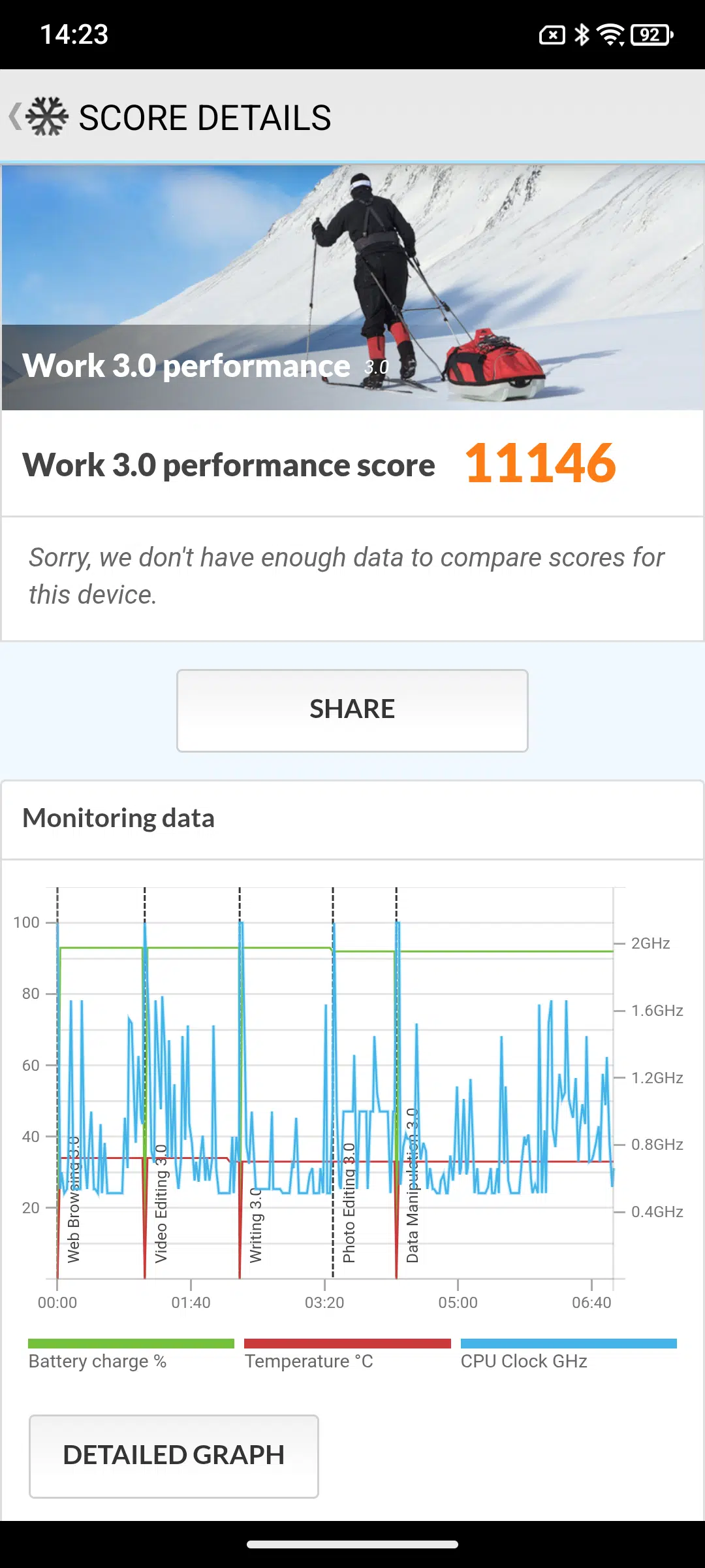 Was erneut schön zu sehen ist, dass der SOC auch unter Volllast die Performance ziemlich gut halten kann und kaum spürbare Abwärme produziert.