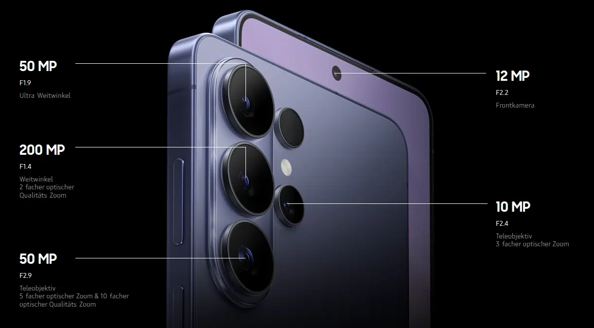 Bei den Kameras hat sich wenig getan. Das Galaxy S26 und S26+ setzen weiterhin auf eine 50-MP-Hauptkamera, eine 12-MP-Ultraweitwinkelkamera und eine 10-MP-Zoomkamera mit dreifacher Vergrößerung, exakt wie beim Vorgänger. Beim Galaxy S26 Ultra gibt es immerhin offenere Blenden: Die 200-MP-Hauptkamera wechselt von f/1.7 zu f/1.4, das große Teleobjektiv von f/3.4 zu f/2.8. Dazu kommen eine 50-MP-Ultraweitwinkelkamera und eine zweite 10-MP-Zoomkamera.