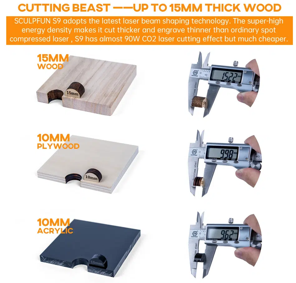 Hier bekommt ihr einen Überblick was für Materialien der Sculpfun S9 Gravieren und schneiden kann.