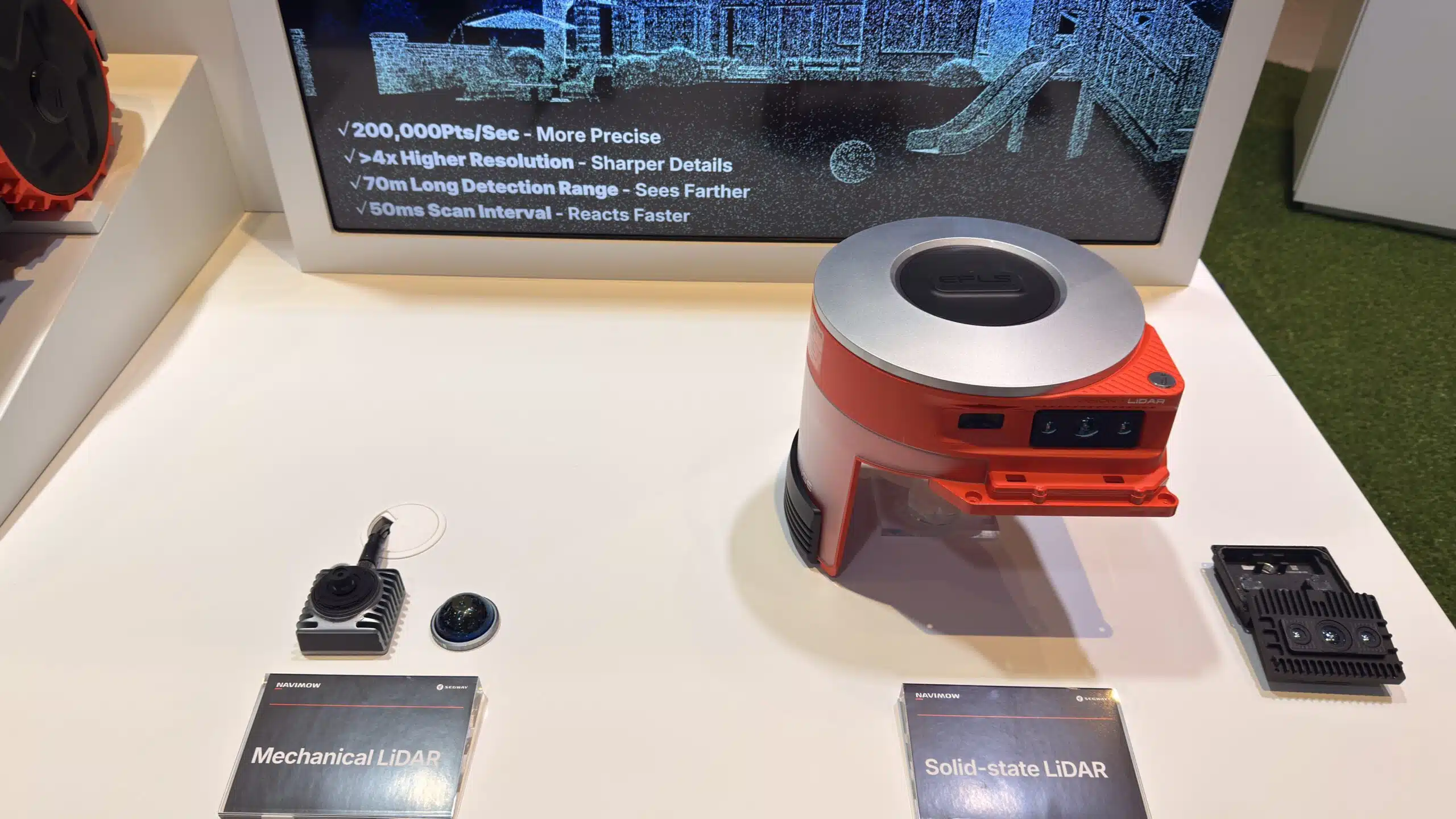 Das System EFLS LiDAR+ nutzt RTK-Satellitendaten, eine optische Kamera und ein Solid-State-LiDAR. Letzteres arbeitet ohne bewegliche Teile und scannt mit rund 200.000 Punkten pro Sekunde die Umgebung – robust, präzise und wartungsarm. Im Klartext, der Roboter soll auch dann noch sauber fahren, wenn der Baum Schatten wirft oder das Abendlicht schwindet.