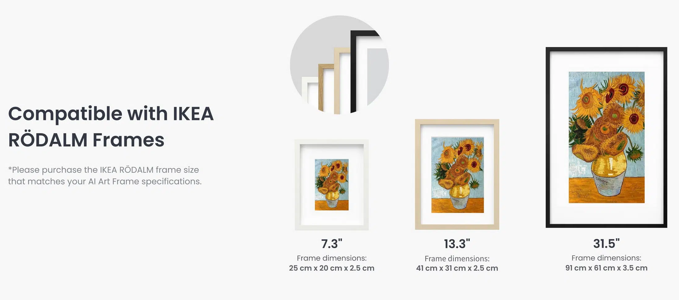 Die Rahmen bestehen aus Aluminium, lassen sich aufstellen oder aufhängen und sogar mit IKEA-RÖDALM-Zierleisten kombinieren. Kabel verschwinden völlig, denn ein integrierter 2.000-mAh-Akku übernimmt die Stromversorgung. Da E-Ink nur beim Bildwechsel Energie braucht, erreicht das Gerät bei einem Bildwechsel pro Woche bis zu zwei Jahre Laufzeit.