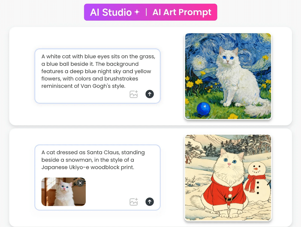 aufbauen. Dazu gibt es zwei Modi: AI Art Prompt (klassische Bildgenerierung) und AI Art Remix (Umwandlung vorhandener Motive in Stile wie Aquarell, Öl oder Anime).