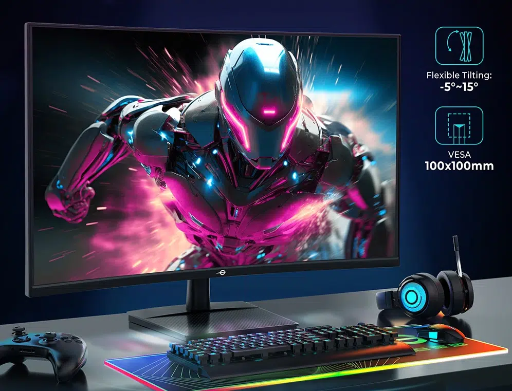 Die 1500R-Krümmung schmiegt sich angenehm ans Sichtfeld an und erzeugt ein immersives Bild, das besonders in Racing- oder Shooter-Games überzeugt. Trotz der Krümmung bleibt das Panel mit 178° Betrachtungswinkel sowohl horizontal als auch vertikal stabil – ideal für Multi-Monitor-Setups oder paralleles Arbeiten.