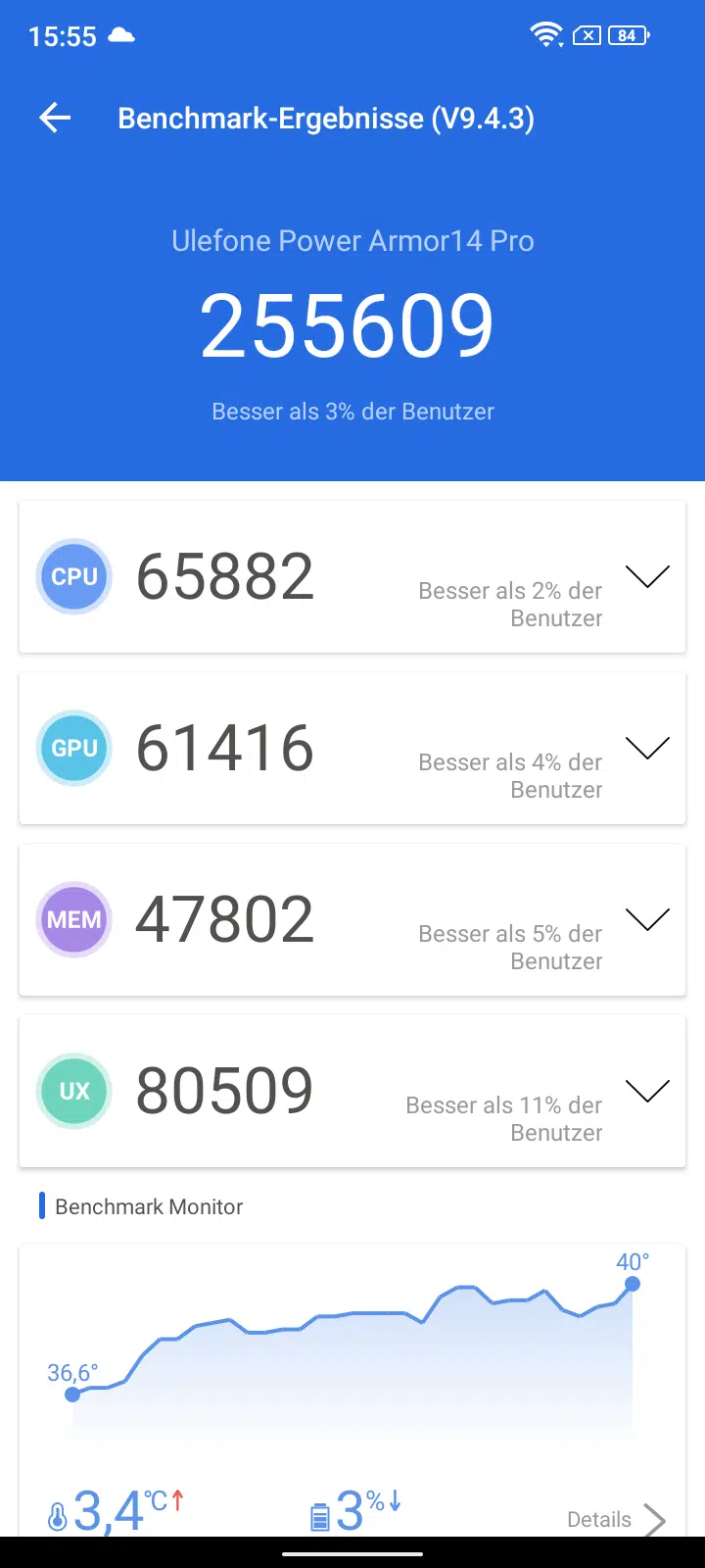Das aufmerksame Leserauge wird auch gesehen haben, das es eine nicht Pro Version des Ulefone Armor 14 gibt: diese setzt auf 4/64GB und einem Helio G35 und ist entsprechend etwas günstiger mit ~175€. Allerdings gibt es dann hier auch nur 4/64GB als Speicherausstattung und die Systemperformance sinkt entsprechend auch. Aber immerhin kann man in beiden Geräten den Speicherplatz bequem erweitern.