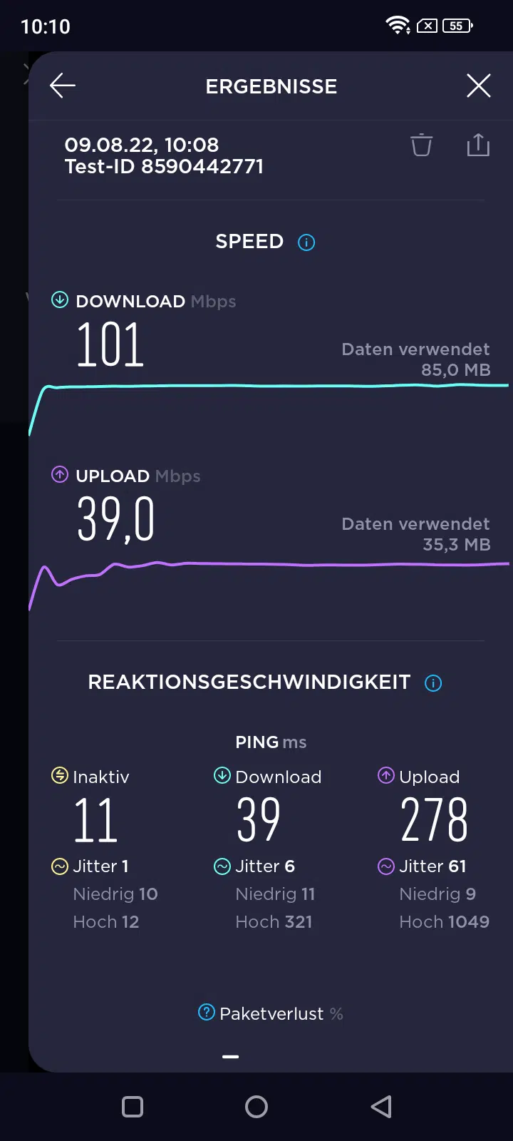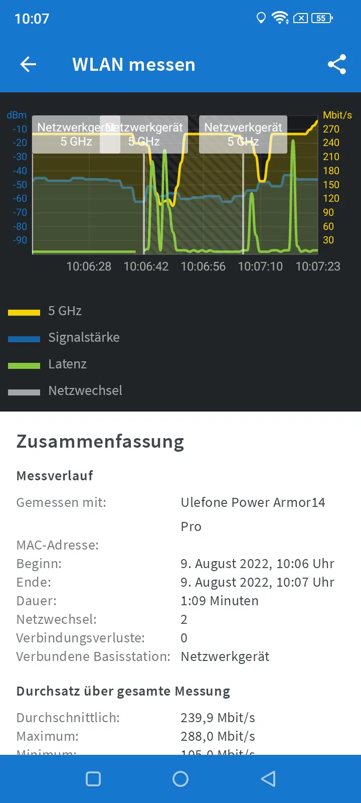 Der GPS Empfang rief keine neuen Bestwerte auf, lieferte aber stabile, solide Werte in der maximalen Bandbreite. Für unsere 100.000er VDSL Leitung reichte es ganz locker aus um voll genutzt zu werden.