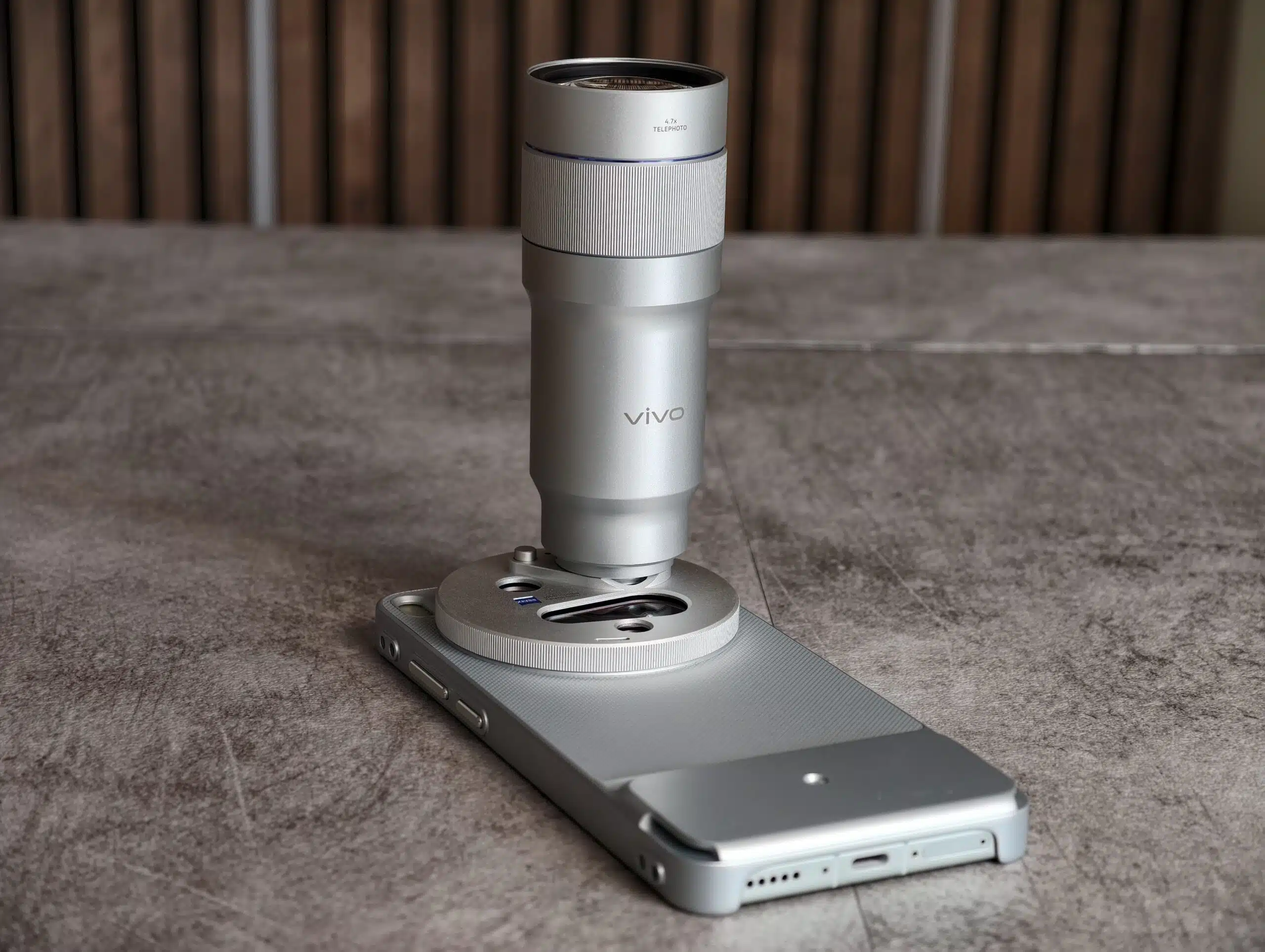 Um die Grenzen der mobilen Fotografie weiter zu verschieben, bietet vivo den 400 mm Äquivalent vivo ZEISS Telephoto Extender Gen 2 Ultra an. Dieses optische Präzisionsinstrument besteht aus 15 Glaselementen und ermöglicht eine 4,7-fache optische Vergrößerung zu der schon integrierten 3,4x fachen optischen Vergrößerung des Teleobjektivs im Smartphone. Allein das Objektiv wiegt schon 248g.