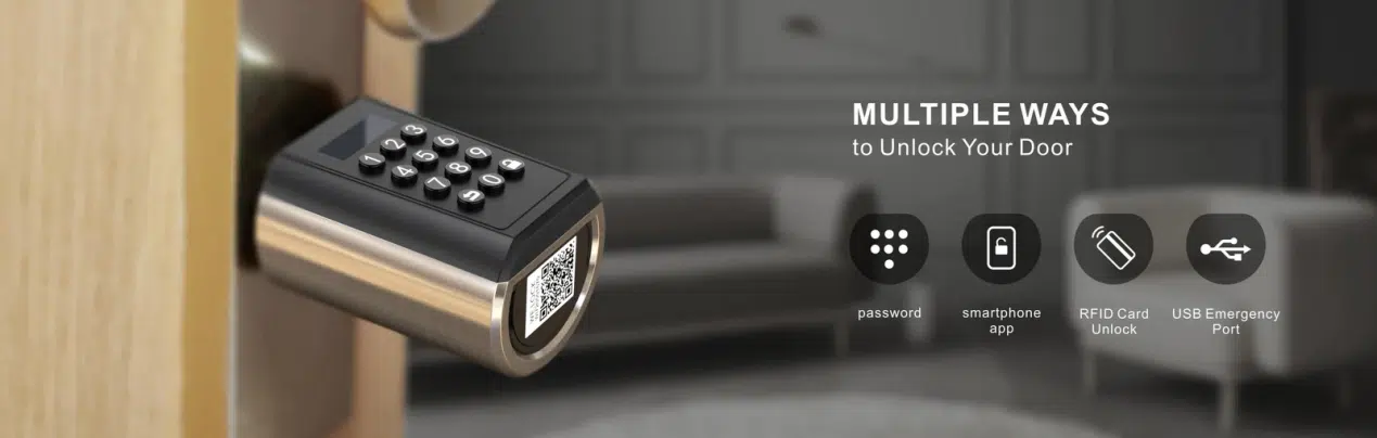 Damit das Ganze auch nicht allzu kompliziert wird, gibt es zum Einrichten eine App. So kann man das Schloss per App entsperren, per RFID Karte öffnen, oder den Ziffernblock nutzen, um die Tür zu öffnen.