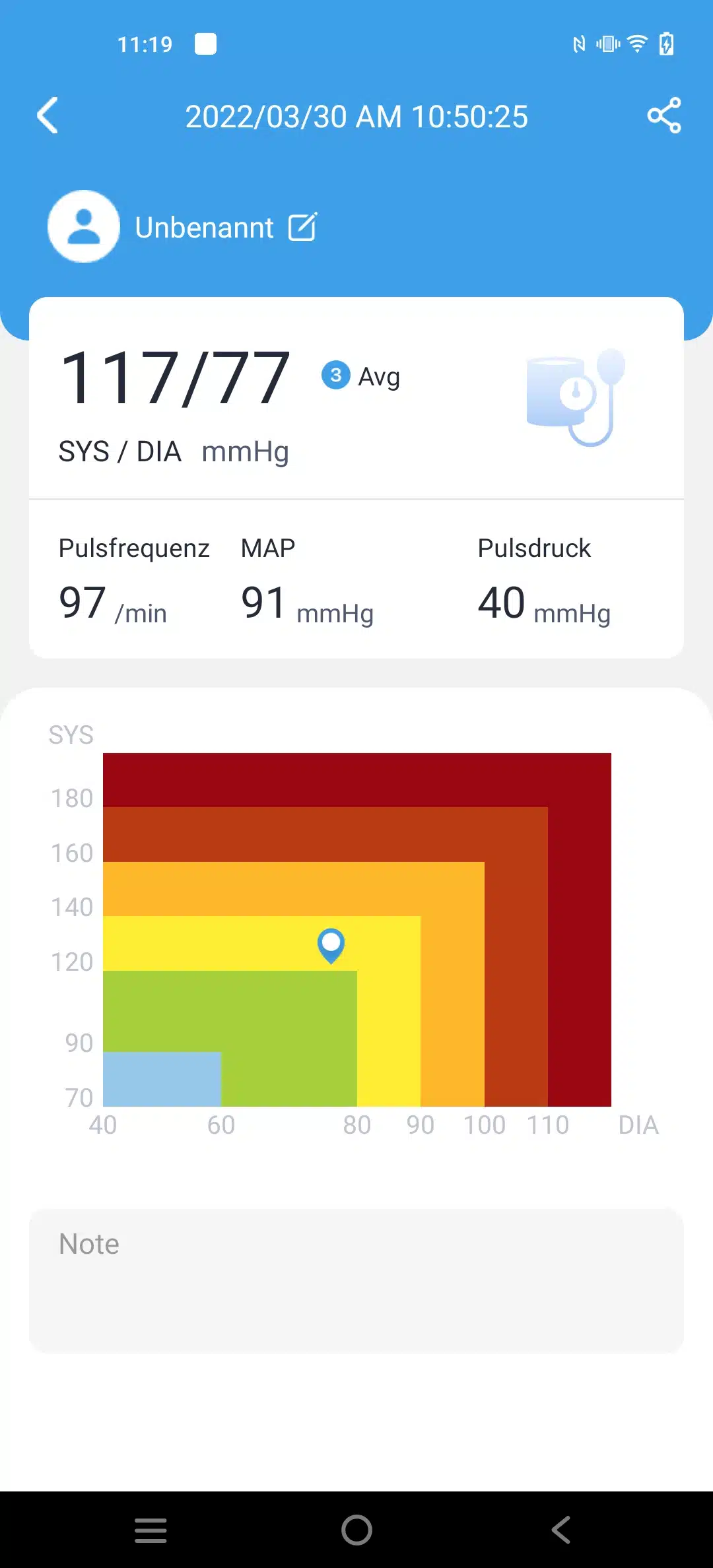 Auch können die Daten mit Notizen beschriftet werden, um sie später selbst besser einordnen zu können. Die Daten können als CSV- oder PDF-Datei exportiert werden, was dann praktisch wird, wenn man diese vielleicht auch an seinen Arzt weiterleiten möchte oder sich selbst auf dem PC speichern will.