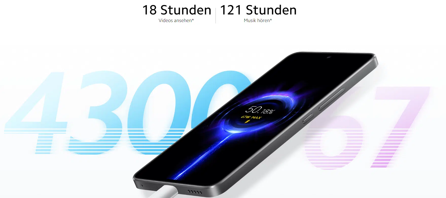 | Akku | 4.300 mAh, 67W Laden |