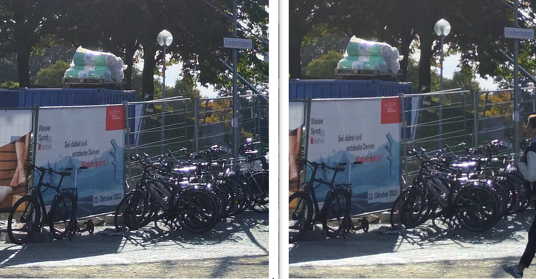 Der Weitwinkelsensor kann hier aber nicht ansatzweise mithalten. Auf dem Smartphone Display noch soweit in Ordnung, in Groß aber am Rand unscharf, verzerrt und dunkel Bereiche haben ein Grundrauschen vorliegen.