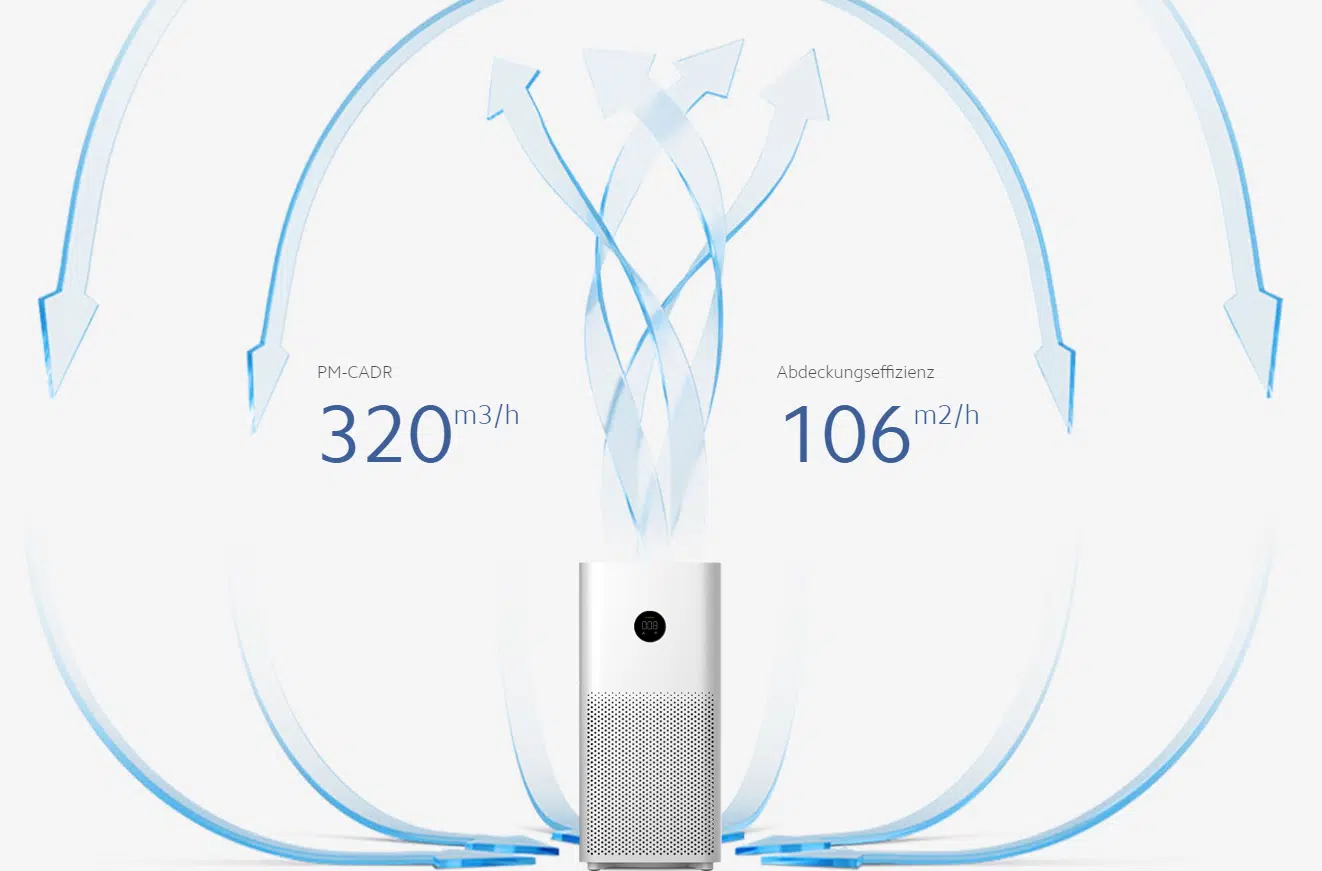 Der Xiaomi Mi Luftreiniger 3C hat eine Größe von Xiaomi 24 x 24 x 52 cm und ist damit relativ klein und sollte dadurch nicht zu viel Platz einnehmen. Das Gerät selbst soll laut Herstellerangaben für Räume von bis zu 37 m² ausreichen. Die Luftreinigungsrate beträgt technisch gesehen bis zu 320 m³/h.