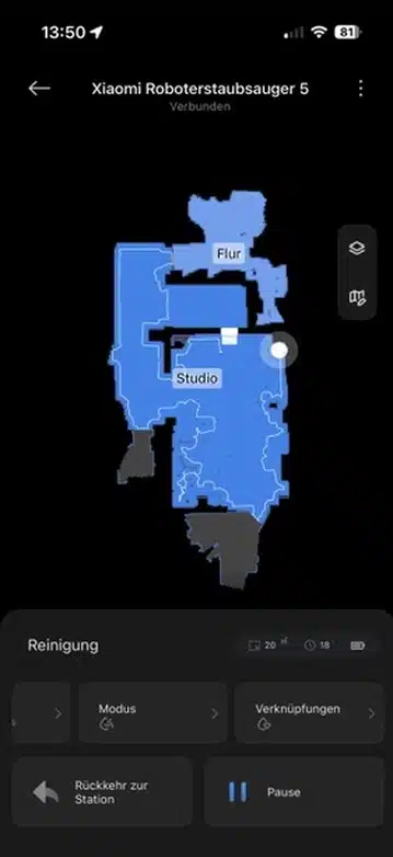 Über die Xiaomi Home App lässt sich alles bequem steuern: Reinigungszonen, virtuelle Wände, 3D-Karten oder die Reihenfolge der Räume. Praktisch ist das Feature „Zuhause teilen“, mit dem mehrere Personen Zugriff auf den Roboter haben. Sprachsteuerung via Alexa oder Google Assistant ist natürlich ebenfalls an Bord.