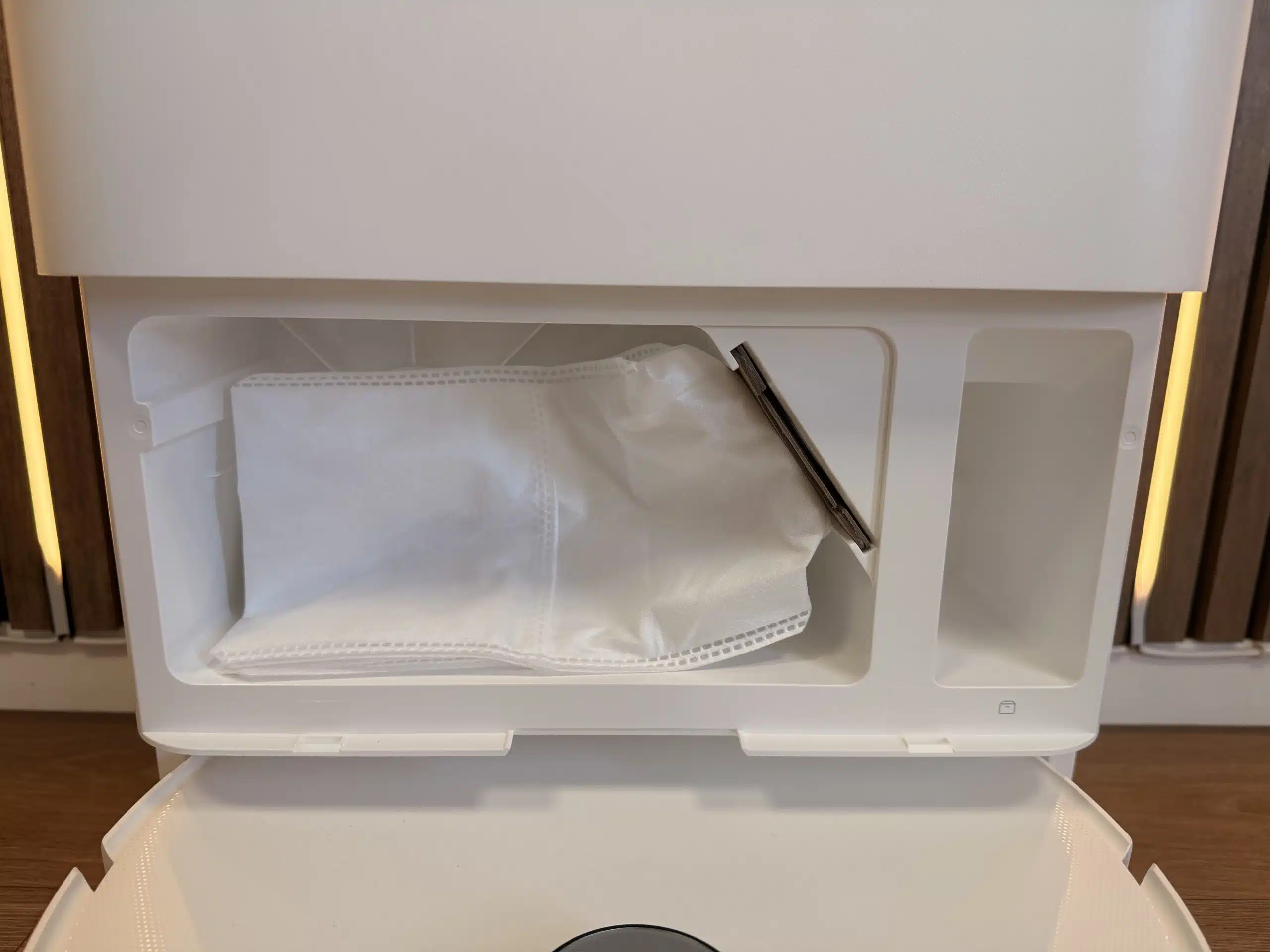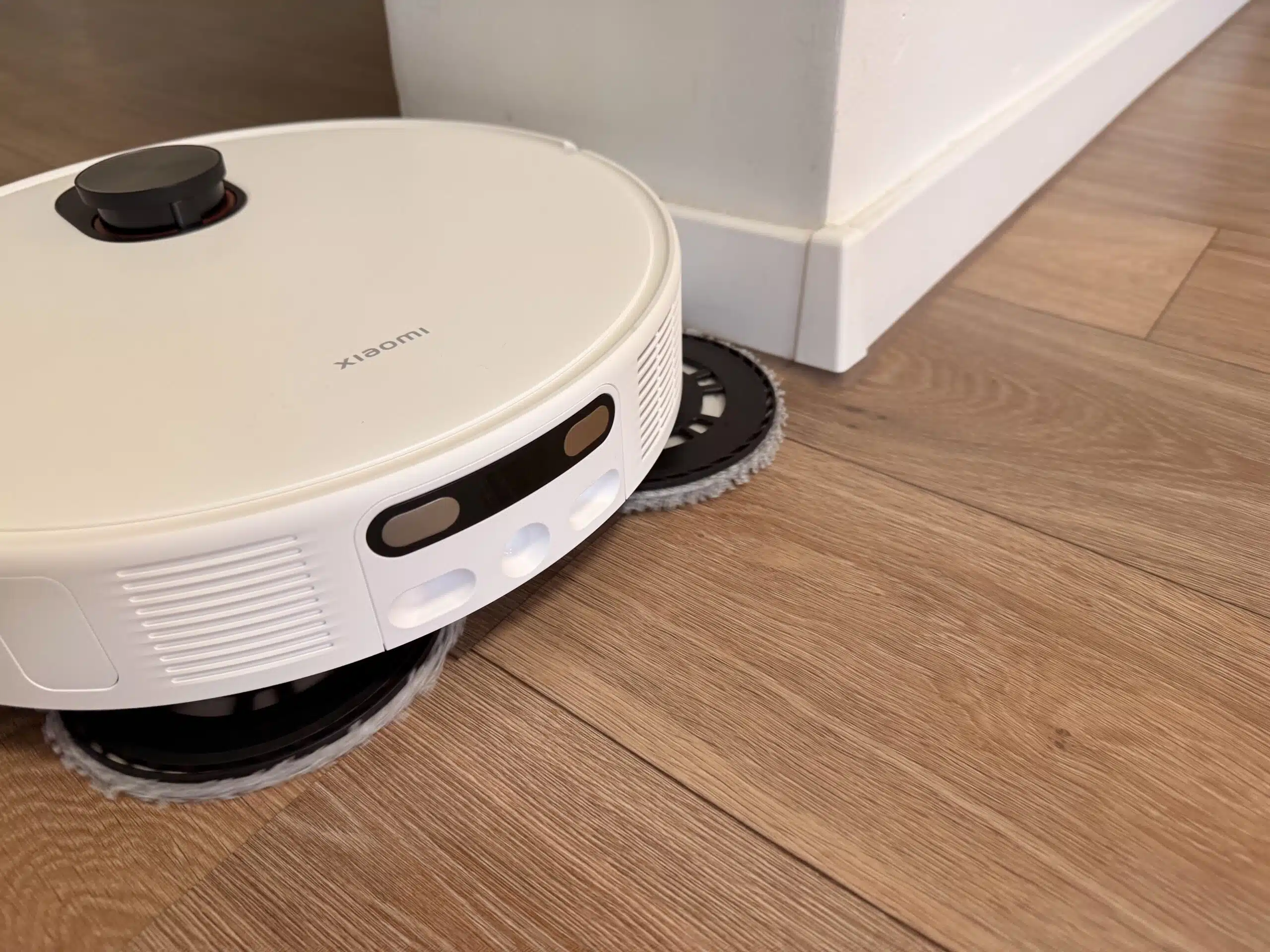 Xiaomi liefert gleich eine vollwertige Reinigungsstation mit, die mehr kann als nur den Staubbeutel leeren. Sie wäscht die Wischmopps mit bis zu 80 °C heißem Wasser, füllt den Frischwassertank nach und trocknet die Mopps anschließend mit Heißluft. Das Ganze läuft angenehm leise ab, sodass man die Station auch problemlos im Wohnzimmer stehen lassen kann.