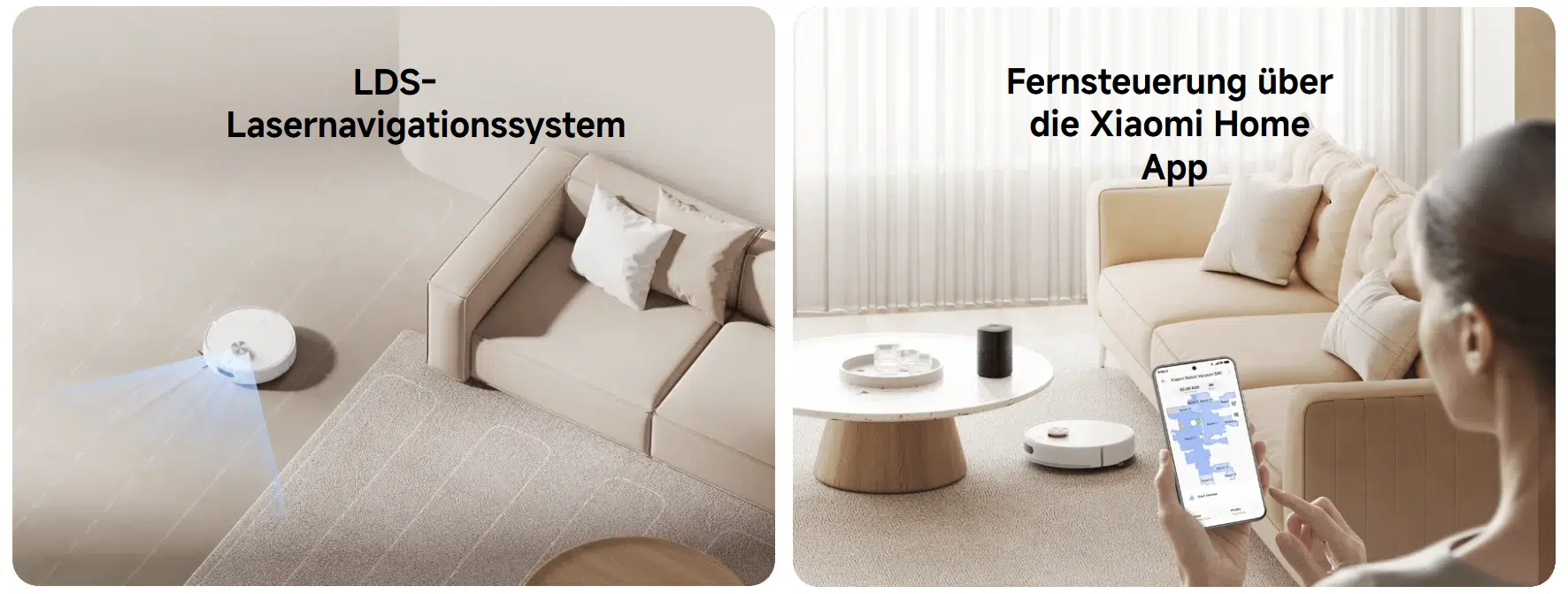 Trotz des günstigen Preises hat Xiaomi dem S40 ein LDS-LiDAR-Navigationssystem spendiert. Das sorgt für präzise Kartierung, effiziente Routenplanung und vermeidet doppelte Fahrten. Nutzer können Zonen, Sperrbereiche und Räume in der App festlegen und dort auch Reinigungszeiten planen oder virtuelle Wände setzen.