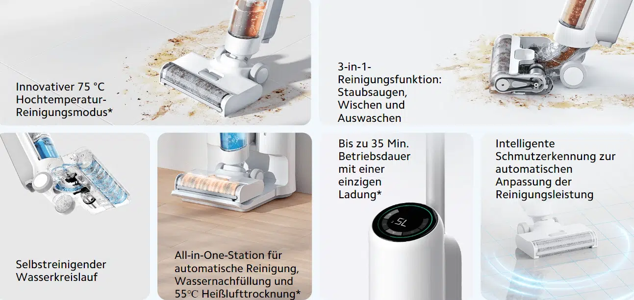Ich selber weiß, wie nützlich ein Nass-Wischsauger zu Hause ist, da ich Zuhause seit über einem Jahr selbst einen in Gebrauch habe. Highlight ist der Trueclean W10 Ultra mit einer Reinigungsstation, die den Wassertank befüllt, die zuständig für die Selbstreinigung ist, das Wasser auf bis zu 75 °C erhitzt und dann auch noch die Rolle trocknet. Sowas habe ich bisher noch nicht gesehen. Dafür kostet er aber auch gleich mal rund 800€.