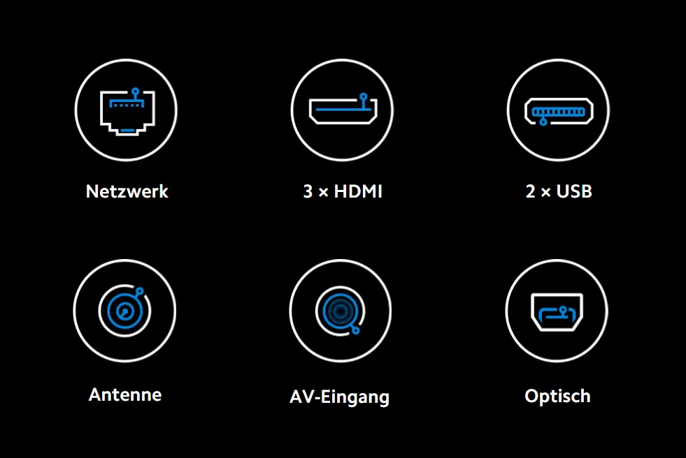 | Anschlüsse | 3x HDMI 2.0 (eARC), USB 2.0, LAN, AV-In, 3,5mm, optischer Ausgang, Dual-Band WLAN, Bluetooth 5.0 |